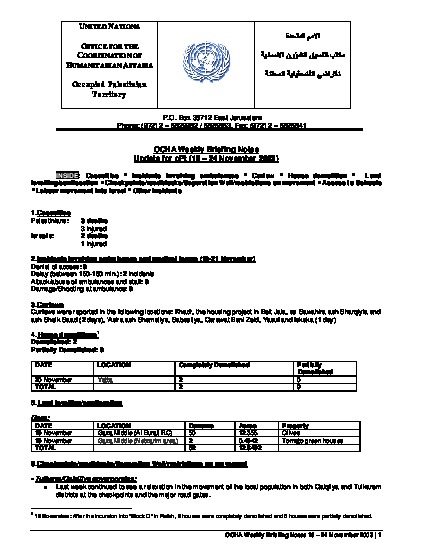 Humanitarian Briefing Notes 19 - 24 Nov 2003