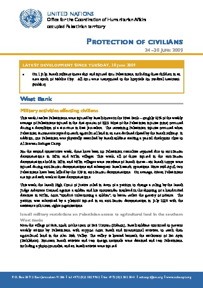 Protection of Civilians Weekly Report | 24 - 30 June 2009