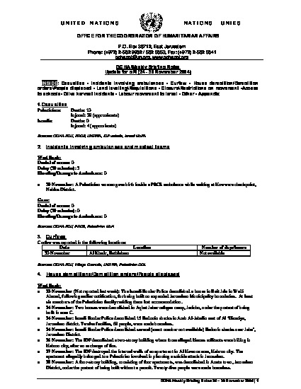 Humanitarian Briefing Notes 24 - 30 Nov 2004