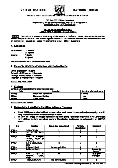 Humanitarian Briefing Notes 25 May - 1 Jun 2004