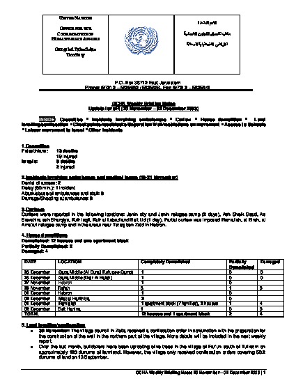 Humanitarian Briefing Notes 25 Nov - 2 Dec 2003