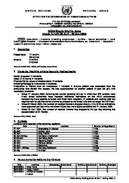 Humanitarian Briefing Notes 27 Apr - 4 May 2004