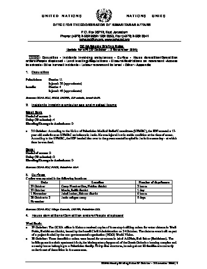 Humanitarian Briefing Notes 27 Oct - 2 Nov 2004