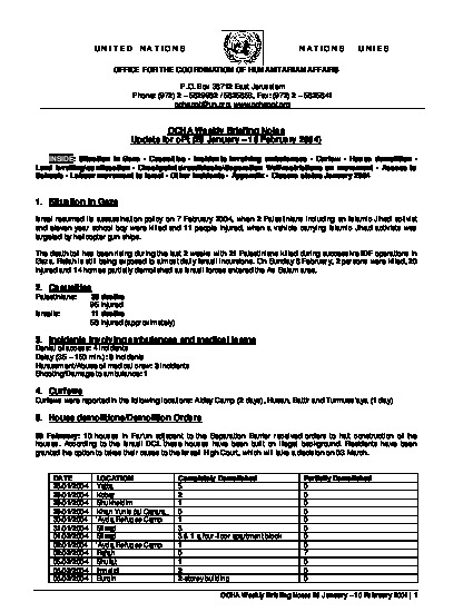 Humanitarian Briefing Notes 28 Jan - 10 Feb 2004