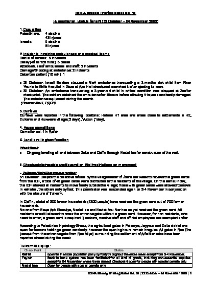 Humanitarian Briefing Notes 29 Oct - 4 Nov 2003