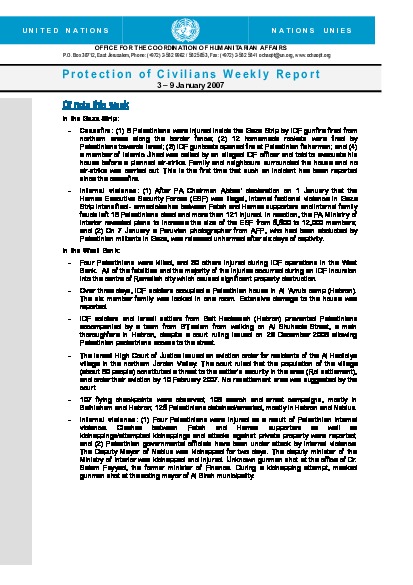 Protection of Civilians Weekly Report 3 - 9 Jan 2007