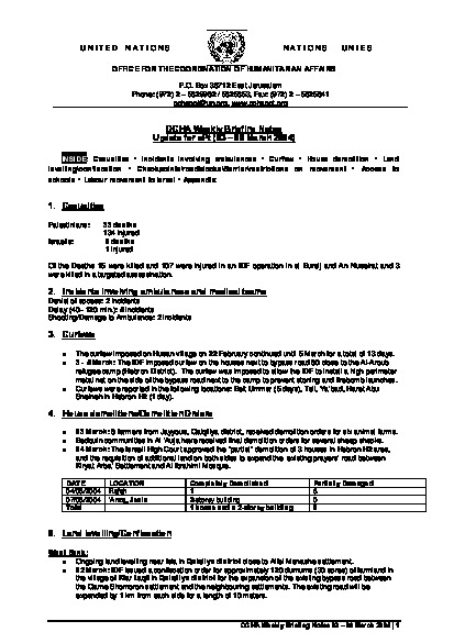 Humanitarian Briefing Notes 3 - 9 Mar 2004