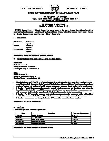 Humanitarian Briefing Notes 6 - 12 Oct 2004
