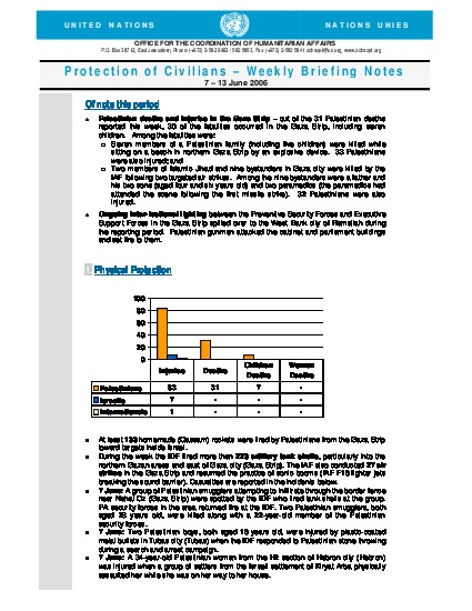 31 Palestinians (7 children) killed, 83 Palestinians, 7 Israelis and 1 International injured. 1 House Demolition in Jenin.