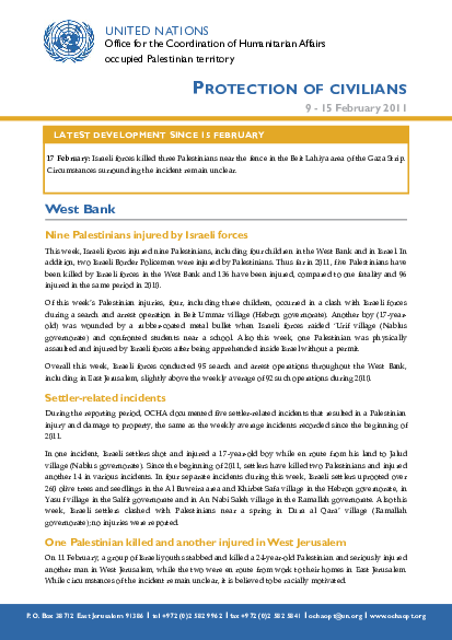 Protection of Civilians Weekly Report | 9 - 15 February 2011