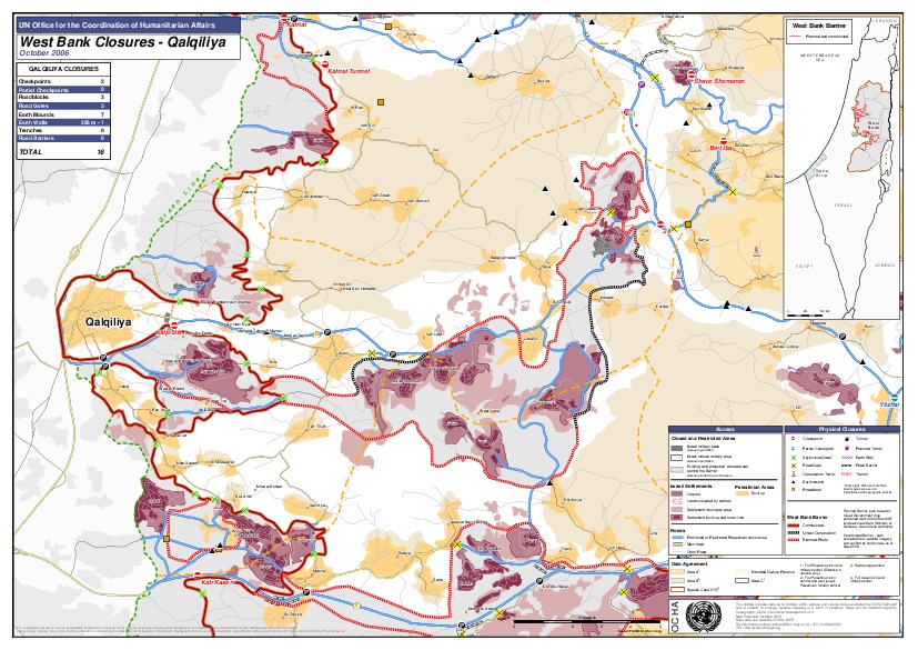 Updated closure map: Checkpoints, road barriers, trenches, closure count, barrier route and settlements October 2006