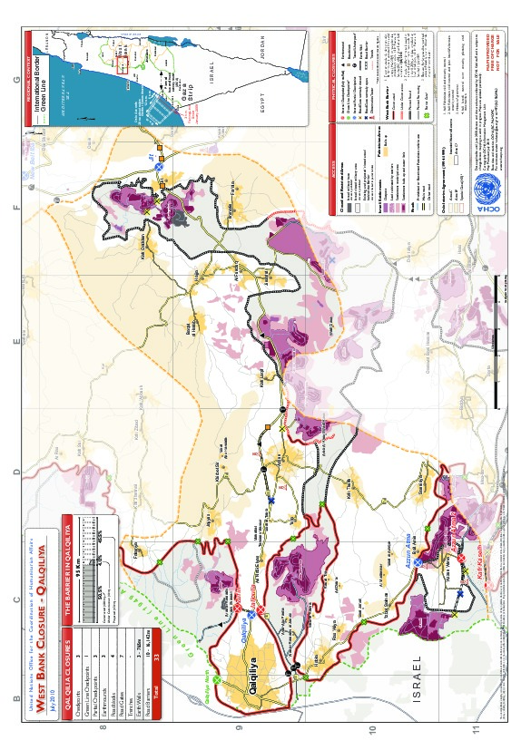 An updated closure map of Qalqiliya Governorate. The map was designed to be printed on A3 (297 × 420 mm) paper. For up-to-date information on closures in West Bank , please visit our on-line interactive maps.