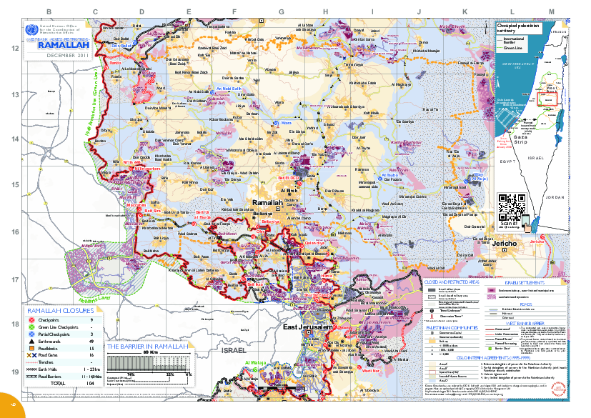 An updated closure map of Ramallah . The map was designed to be printed on A3 (297 × 420 mm) paper. For up-to-date information on closures in West Bank , please visit our on-line interactive maps.