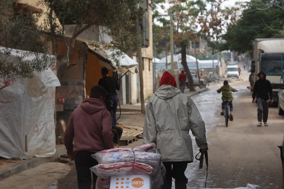 Despite these efforts, the needs for shelter and NFIs remain extensive. More than 57 per cent of the population is estimated to lack adequate shelter materials, while 50 per cent of the population is estimated to be in need of emergency NFIs. Operational challenges have persisted during the second month of ceasefire, particularly in northern Gaza, where access constraints, extensive rubble, damaged infrastructure, limited space and limited warehouses, high transport costs, and fuel shortages continued to limit the scale and speed of the response. Early seasonal rainfall further damaged tents and makeshift shelters in several displacement sites and collective centres, compounding needs as previously distributed items deteriorated and no longer provided adequate protection.