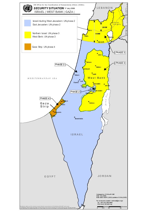 Regional Security map, Israel, West Bank and Gaza.