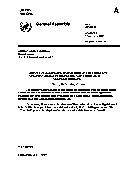 The Situation of the Human Rights in the Palestinian Territories Occupied Since 1967 | United Nations | Sep 2008