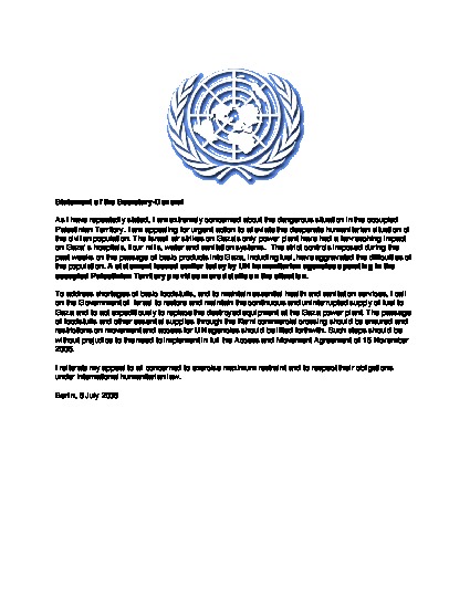 Statement of the Secretary General on the situation in the Occupied Palestinian Territories. Berlin 8. August 2006