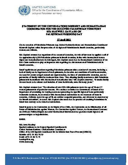 Statement by the United Nations Resident and Humanitarian Coordinator for the Occupied Palestinian Territory