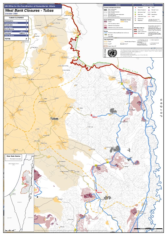 Updated closure map: Checkpoints, road barriers, trenches, closure count, barrier route and settlements October 2006