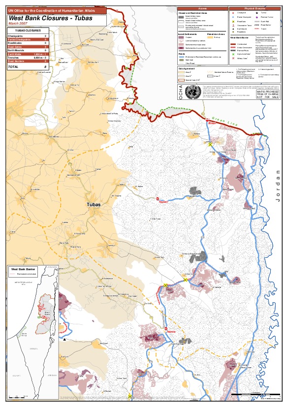 Updated closure map: Checkpoints, road barriers, trenches, closure count, barrier route and settlements March 2007