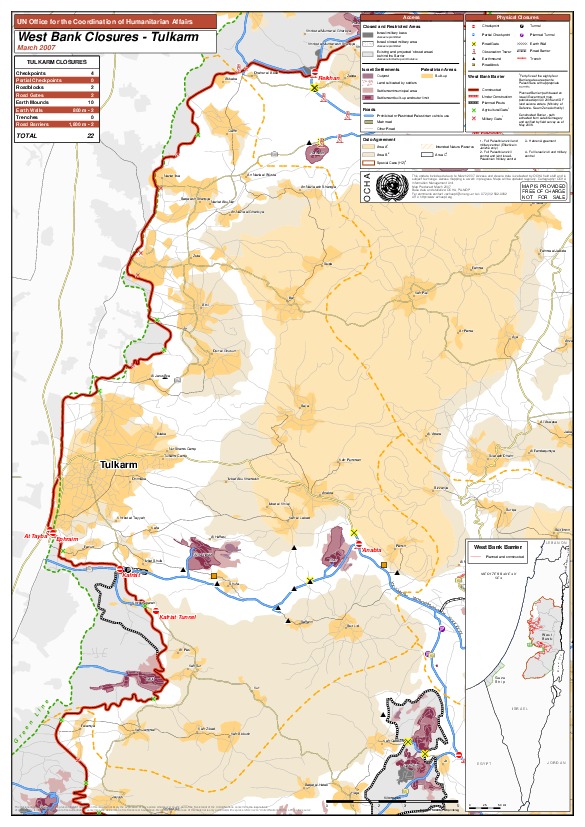 Updated closure map: Checkpoints, road barriers, trenches, closure count, barrier route and settlements March 2007