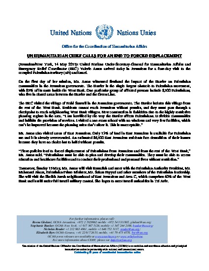 UN Humanitarian Chief Calls for an End to Forced Displacement