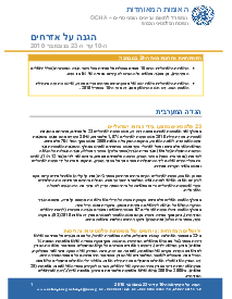 Two Palestinians killed in Gaza and another 33 injured throughout the OPT. Settlers take over a house in East Jerusalem. In the West Bank, settler violence continues. Israeli authorities announced an easing of access restrictions. In the Gaza Strip, air strikes and restrictions on access to land continue. A three-month suspended prison sentence for the use of a child as a human shield during the "Cast Lead". Reduction in operating days at Rafah Crossing. Wheat reserves continue to decline. Daily power cuts reached up to 12 hours per day throughout the Strip.