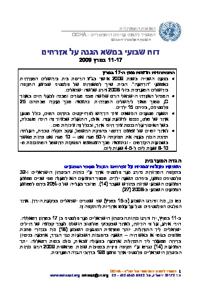 דוח שבועי בנושא הגנה על אזרחים | 11-17 מרס 2009