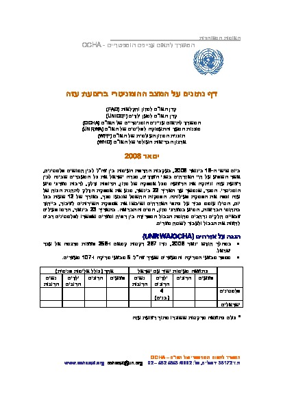 דף נתונים על המצב ההומניטרי ברצועת עזה | ינואר 2008