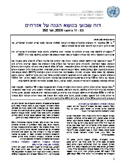 Latest on Gaza Strip-The ongoing closures have significantly reduced the capacity of UN humanitarian agencies to provide assistance in the event of an escalation in violence. UN humanitarian assistance programs have run out of stock for several essential supplies and are facing severe difficulties in implementing their regular programmes. UNRWA has no flour or cash-notes to distribute, affecting thousands of dependant beneficiaries. WFP has been unable to preposition stocks; in case of an emergency, it has no food available within the Gaza Strip. There are shortages of over 100 essential pharmaceuticals and critical emergency surgical kits.