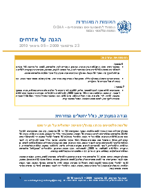 During the two-week period, eight Palestinians killed and 16 others injured by Israeli forces throughout the OPT. Settler-related incidents continue; one settler killed and 15 Palestinians and six settlers injured. Demolitions in Area C of the West Bank. Ban on Palestinian use of a main road (443) declared unlawful. Significant movement obstacle removed in Hebron area. In Gaza, Death toll from H1N1 reaches 18. One Palestinian died in a tunnel collapse. Glass allowed into Gaza for the first time since June 2007. Limited opening of Rafah and Erez Crossings. Nahal Oz Crossing shut down.