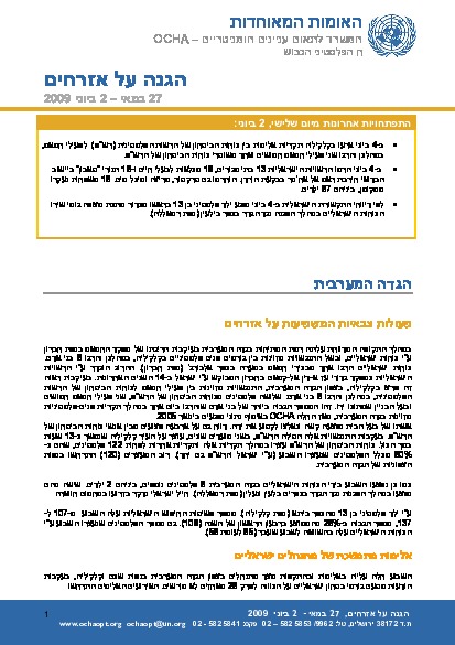 דוח שבועי בנושא הגנה על אזרחים | 27 מאי - 2 יוני 2009