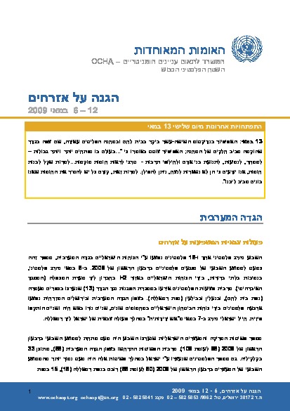 Israeli airstrikes continued to target tunnels under the Gaza-Egypt border, and armed clashes took place between Israeli forces and Palestinian armed militants in several areas in Gaza, one Palestinian killed. One Palestinian was killed and eighteen others injured by Israeli forces in the West Bank. Israeli-settler violence against Palestinians in the West Bank significantly diminished in comparison with recent weeks. The largest single-week shipment of industrial water-related supplies entered into Gaza since June 2007