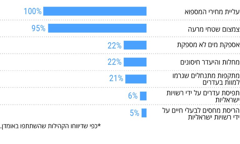 ירידה במספר בעלי החיים ובשטחי המרעה המעובדים